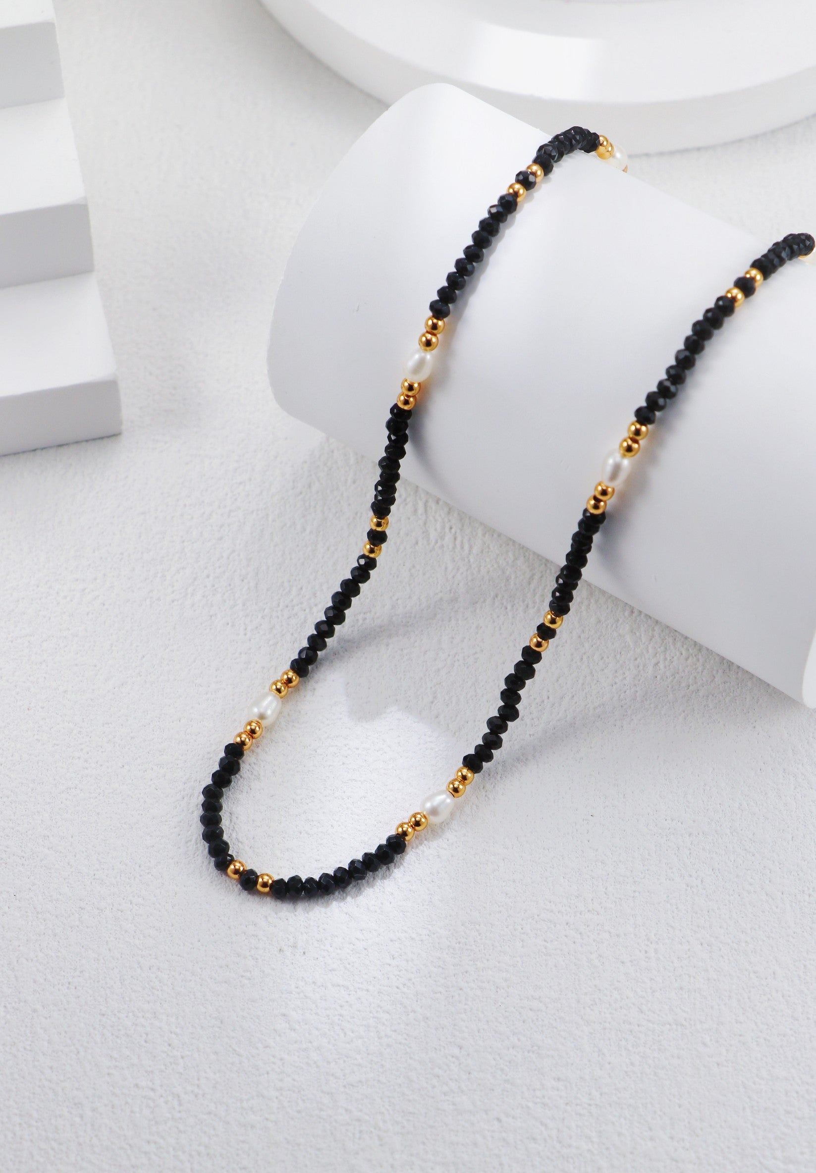 Materials: 18k gold plated silver base, Pearl, Onyx Crystal
