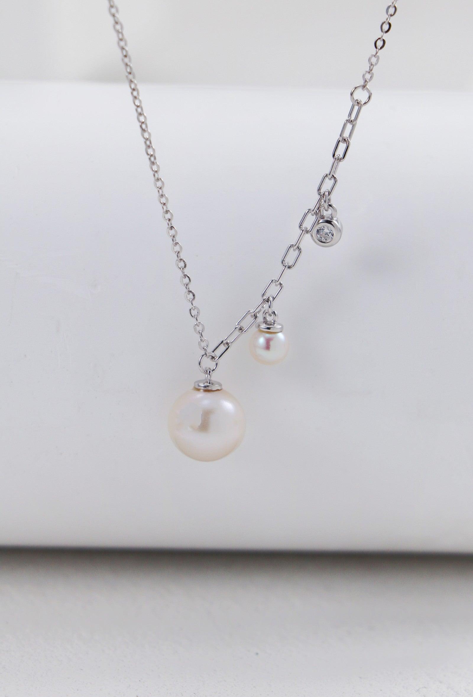 Delicately crafted, these necklaces feature lustrous pearls set on fine gold and silver chains, each adorned with a small sparkling gem for a touch of understated elegance.