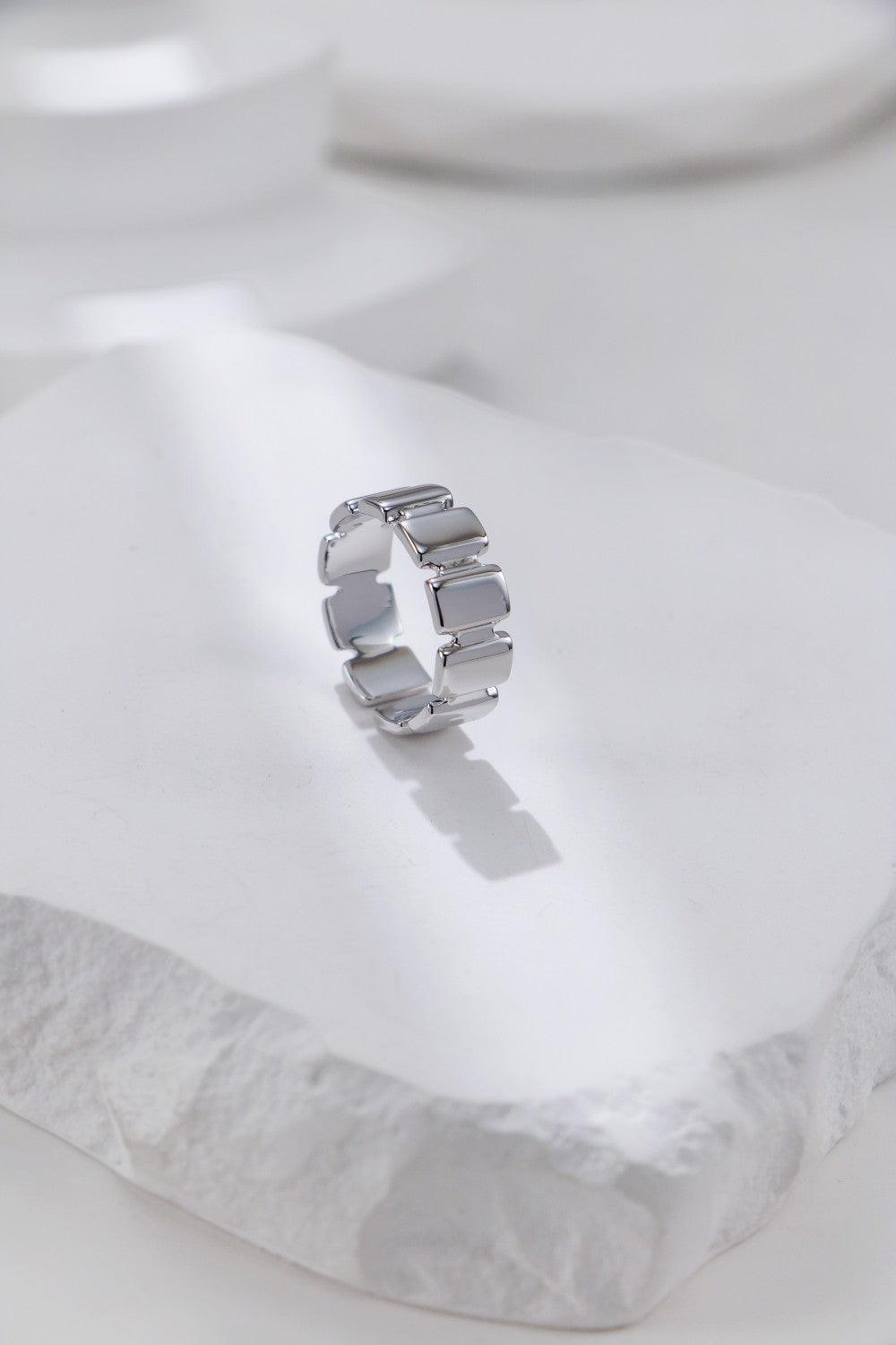 Simplicity meets sophistication with this geometric link ring. Its distinct design offers a fresh twist on the classic band, combining contemporary style with timeless appeal.