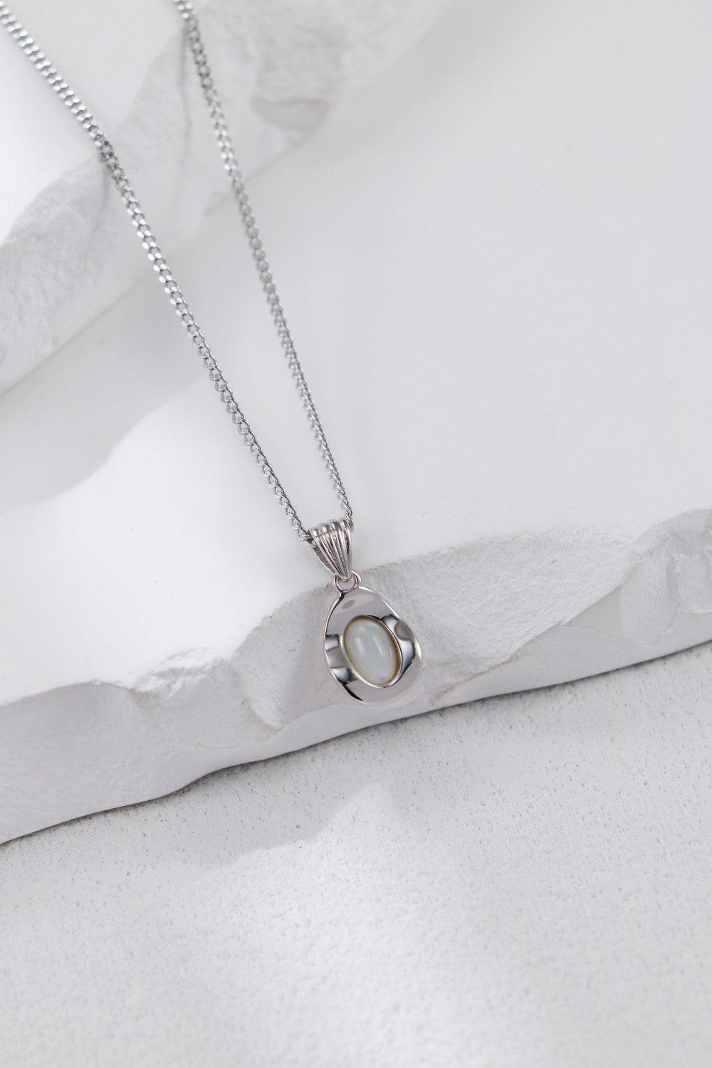 Silver White Shell Oval Necklace