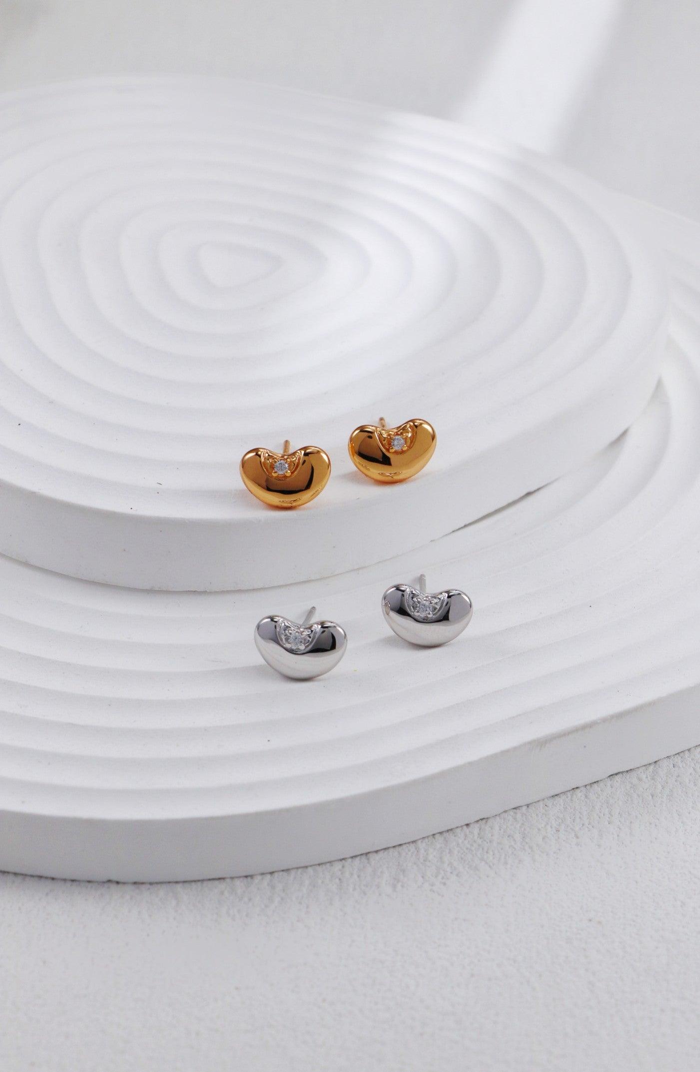 Sleek and minimal, these heart-shaped stud earrings bring subtle elegance to any look. Crafted with a smooth, polished finish, they catch the light just right, highlighting the petite gemstone accent nestled within.